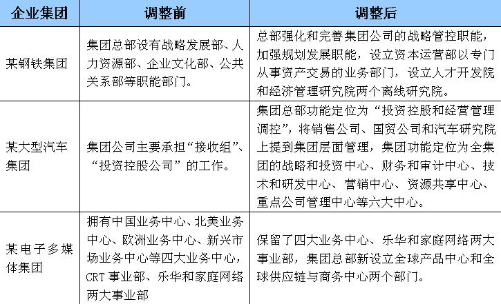 案例一,2009年集团总部调整为战略管控型的企业示例
