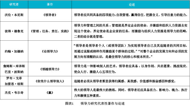 自从上世纪60年代领导力成为一个管理学科之后,领导力的研究和实践受到包括政府、企业等各类组织越来越多的重视,其代表性论著和论述如图表1所示。