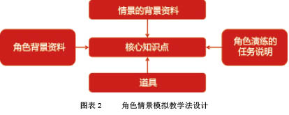 角色情景模拟是情境式教学中最普遍的教学模式,让学员在一定情境中扮演背景故事里的角色,从中学习某种技能(见图表2)。