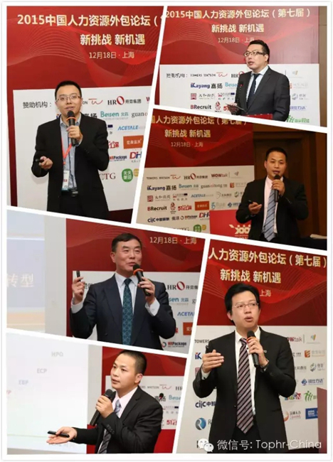 2015中国人力资源外包论坛(第七届)以“新挑战 新机遇”为主题,由任仕达中国市场、传播暨公共事务总监 孙海宁 先生主持该论坛。万宝盛华集团董事总经理张锦荣先生、泰科电子宽带网络事业部大中华区人力资源总监杨磊先生、佩琪集团创始人、总裁张东进先生、51社保网创始人兼CEO余清泉先生、锐仕方达猎头创始人兼CEO黄小平先生,分别带来“生产性服务业助推经济转型”、“从劳务派遣到人力外包”、“基于云平台的HR外包服务助力劳务派遣成功转型”、“互联网社保服务之道”、“人力资源公司营收上亿的创业之道”五大主题演讲。